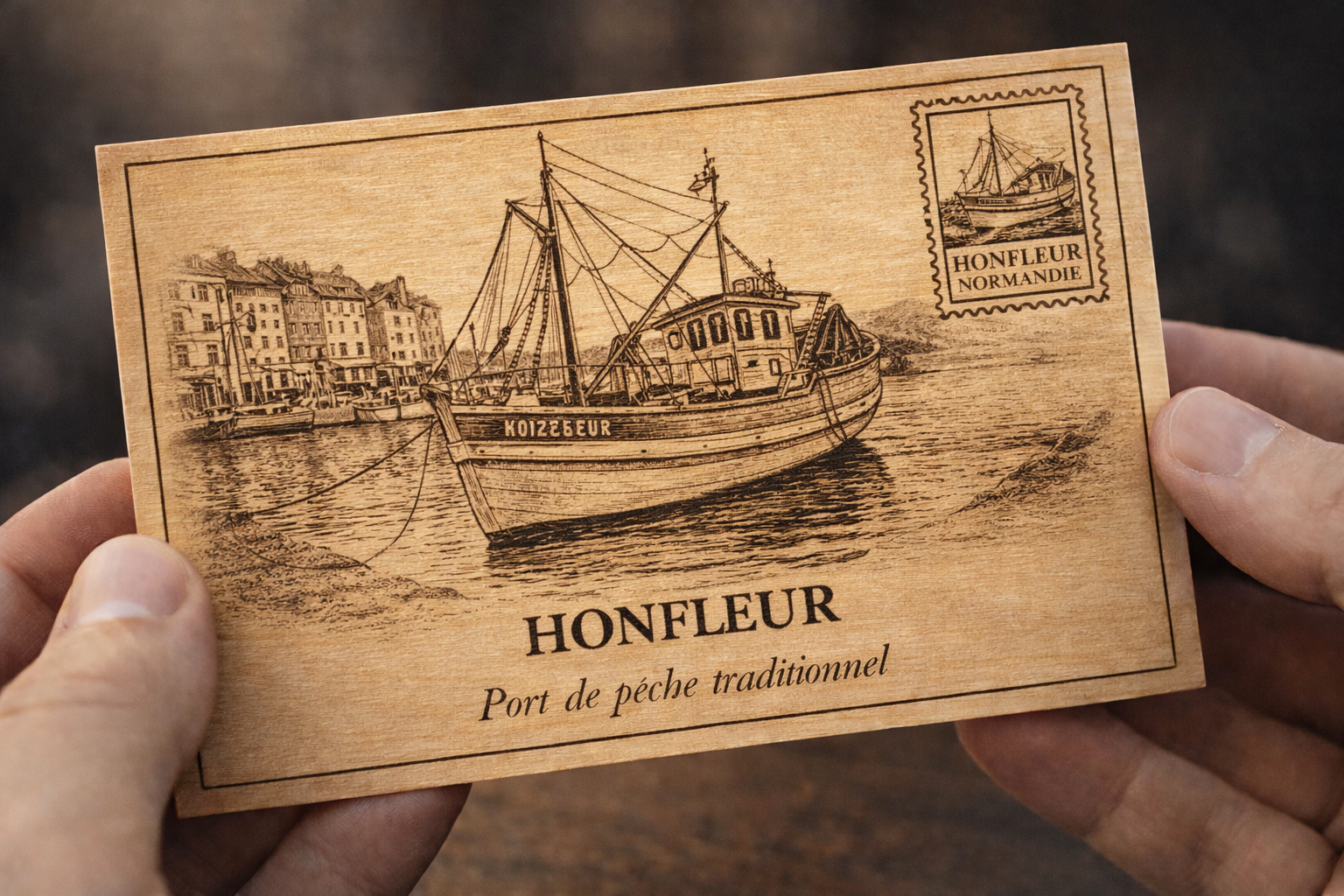 La gravure sur bois permet de donner vie à vos supports décoratifs, cartes personnalisées et porte-clés.